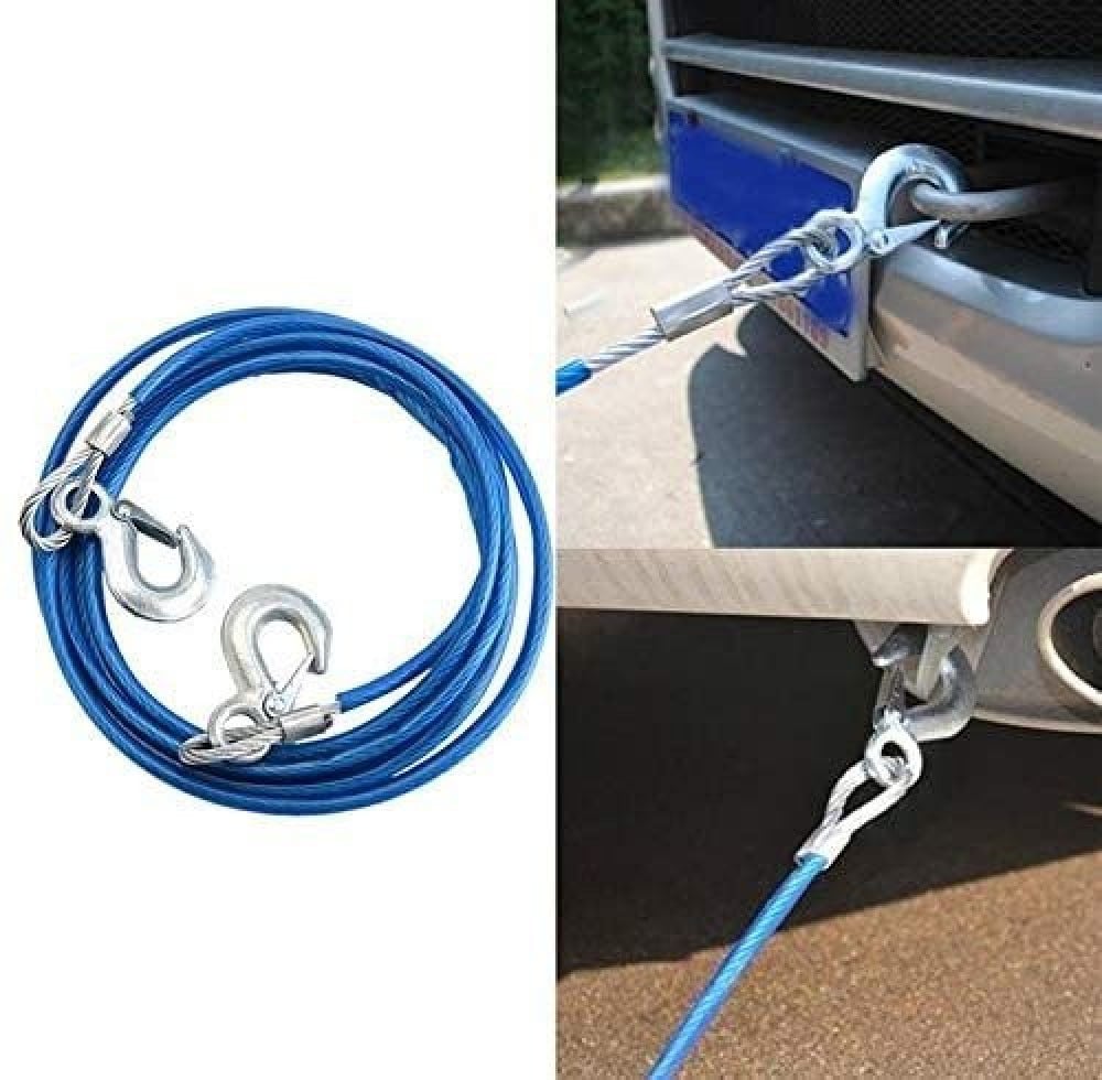 حبل سحب جر السيارة فولاذي طول 4 متر مع خطاف أمان عالي القوة