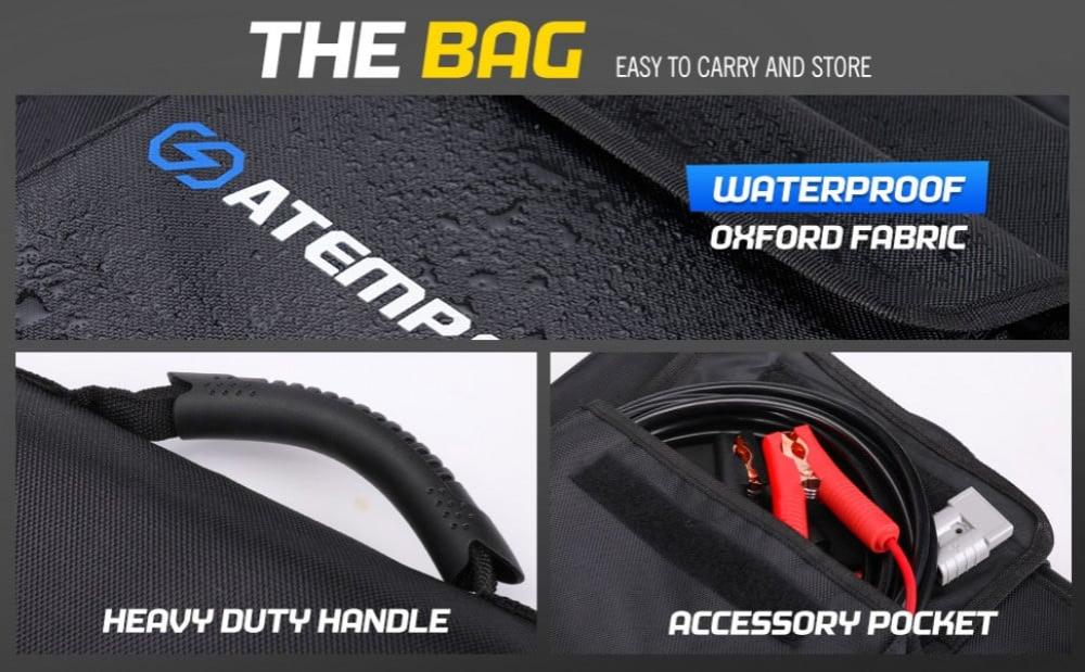 اذا كنت صاحب رحلات بشكل متكرر فيجب أن تعرف مدى أهمية وجود مصدر طاقة مرن معك وهنا يأتي دور الألواح الشمسية القابلة للطي من أجل توصيل سهل وآمن لوح طاقة شمسية 200 امبير قابلة للطي من الشركة الاسترالية ATEM POWER تتميز بخفه وزنها وصغر حجمها يصل وزنها الي 7 كجم فقط مما يجعلها مثاليه كما يتميز لوح الطاقة الشمسية القابل للطي بوظيفة التحسين التلقائي لإعادة الاتصال الفوري عند عودة ضوء الشمس كما أنها مزودة بمنظم MPPT والذي يمكن من الحصول على طاقة اكبر بنسبة 20 % من منظم نوع PWM .