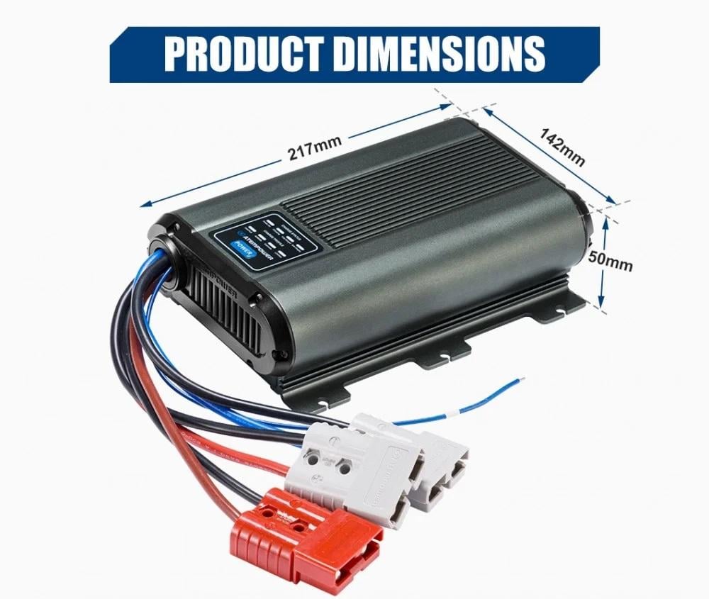 • سهل ومتعدد المهام: مثالي لعربات التخييم، سيارات الدفع الرباعي، الكرفانات، المركبات الترفيهية، الشاحنات، المقطورات، المركبات التجارية والقوارب، مؤشر ال LED يظهر لك مرحلة الشحن الحقيقية ، و خاصية الذاكرة تجعل من عملية الشحن أكثر ملائمة.