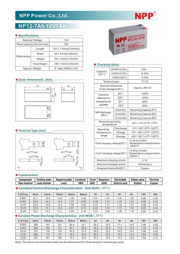 بطارية 12 فولت 7 امبير - النوع: أ ام جي شحن عميق - الوزن: 2.1 كجم - عمر افتراضي 5 سنوات أو اكثر حسب نسبة التفريغ