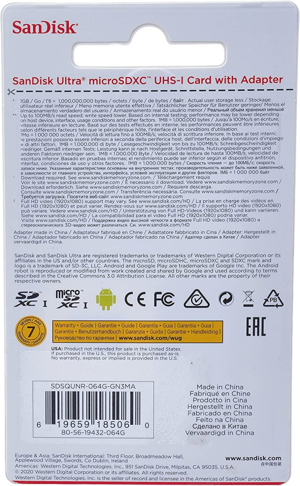 Sandisk Micro SD card Class10 TF card 64gb SDXC Up to 100Mb/s memory card