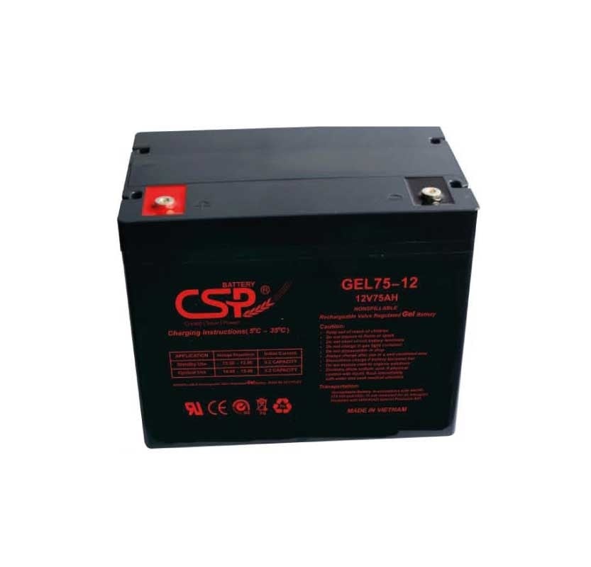 12 volt 75 amp battery - Type: deep charging gel - Weight 21.2 kg - Warranty period: one year - Life expectancy of 5 years or more depending on the discharge rate